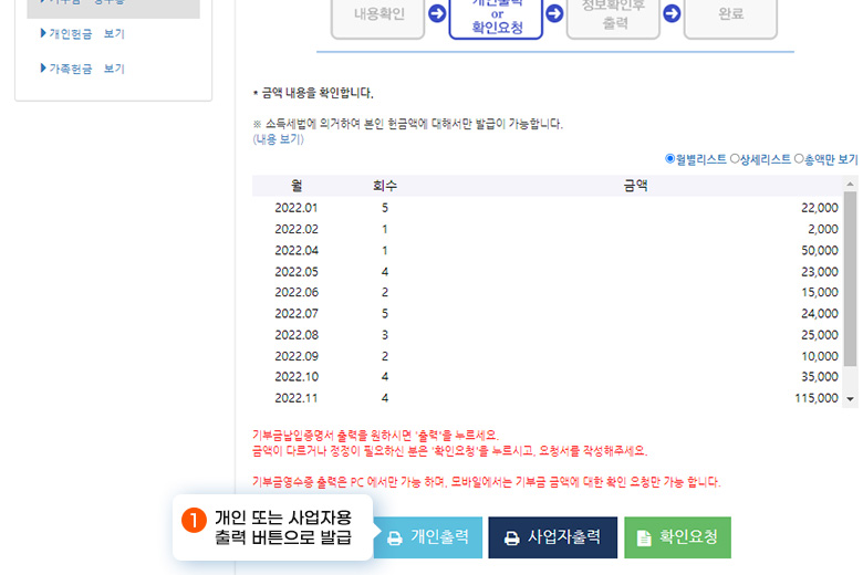 인쇄 창에는 3종류의 문서가 출력됩니다.